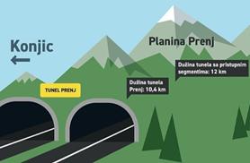 | "Bosna i Hercegovina će se tunelom Prenj strateški kvalitetnije pozicionirati u evropske tokove, jer će se transportnim međunarodnim Koridorom 5C privući saobraćaj putnika i prijevoz roba od Budimpešte prema Jadranu. Veliki dio srednje Evrope će se povezati s jugoistočnom Evropom i Jadranskim morem. Time Bosna i Hercegovina postaje važna tranzitna zemlja koja povezuje evropski jugoistok i sjever", poručili su ranije iz Autocesta FBiH. | |